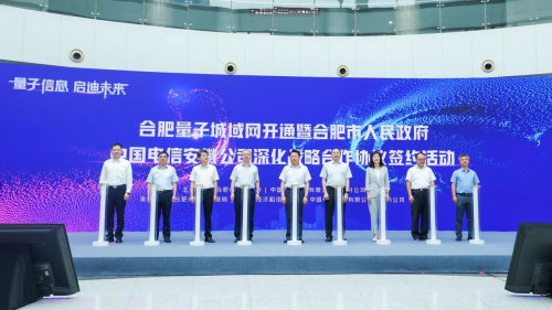 2022年8月26日上午,由合肥市人民政府、中国电信安徽公司联合主办,合肥市数据资源局、合肥市经济和信息化局、中国电信合肥分公司共同承办的“合肥量子城域网开通暨合肥市人民政府、中国电信安徽公司深化战略合作协议签约活动”在合肥市人民政务阳光大厅正式举行。